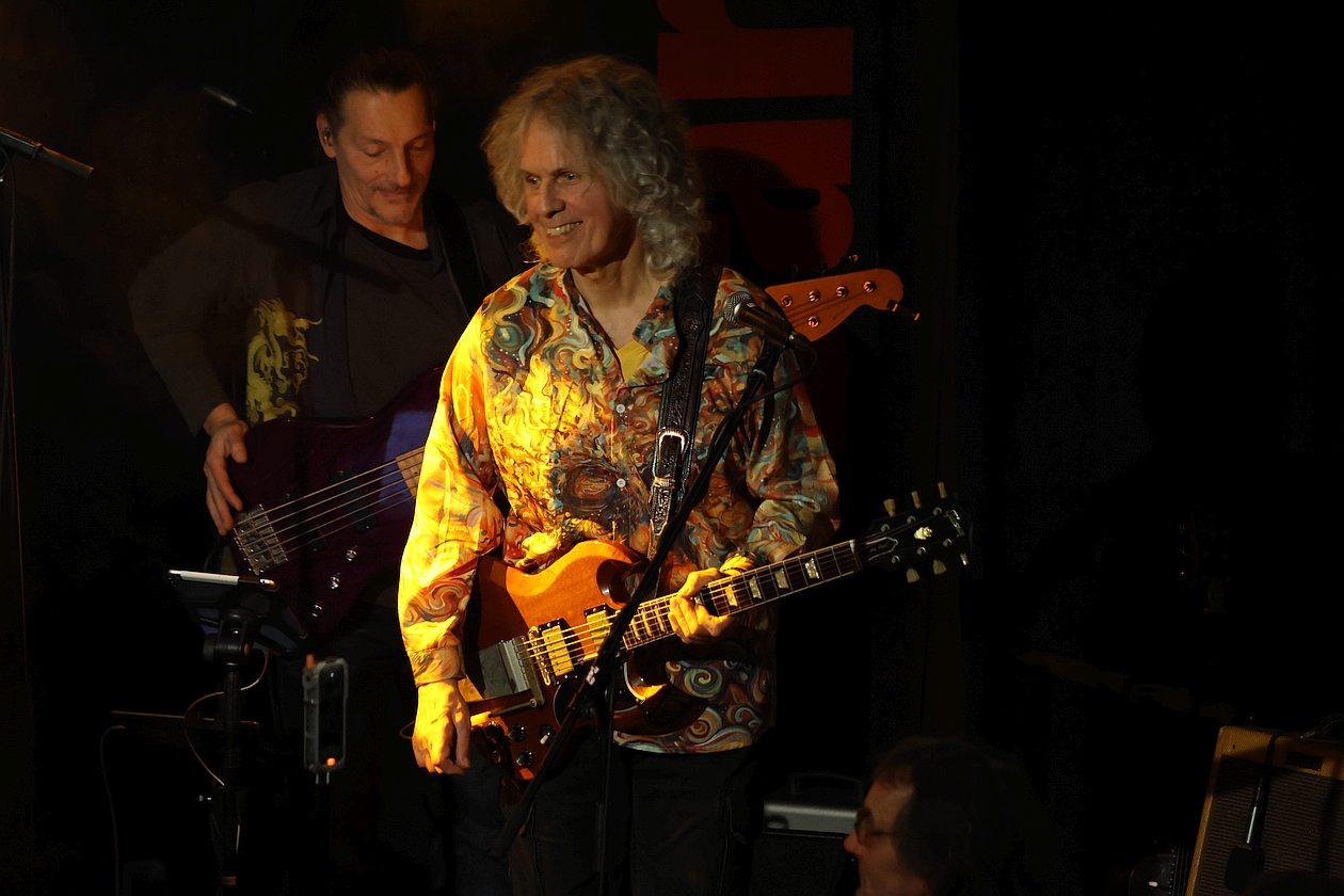 Dieser Konzertbericht ist allerdings nicht unser erster. Bereits aus Anlass des 50-jährigen BRÖSELMASCHINE-Bestehens besuchte mein Stellvertreter Stefan Haarmann im Oktober 2019 die „Elegy-Release-Tour“ im Duisburger Grammatikoff – so gesehen also ein echtes Heimspiel für Duisburger Weltmusik-Krautrocker – und verlieh seiner Begeisterung dazu Ausdruck, indem er feststellte: „Selten gibt es Bands, die es auch nach einem halben Jahrhundert schaffen, das Niveau vergangener Jahrzehnte nicht nur halten, sondern sogar noch steigern zu können […] Peter Bursch und seine Mitstreiter liefern einen denkwürdigen Auftritt, der die Qualität des aktuellen Albums 'Elegy' auch live demonstriert und die Ausnahmestellung als lebende Legenden unterstreicht, denen es gelungen ist, den Geist der Flower-Power-Generation ins Hier und Jetzt hinüber zu retten, ohne antiquiert zu wirken“.