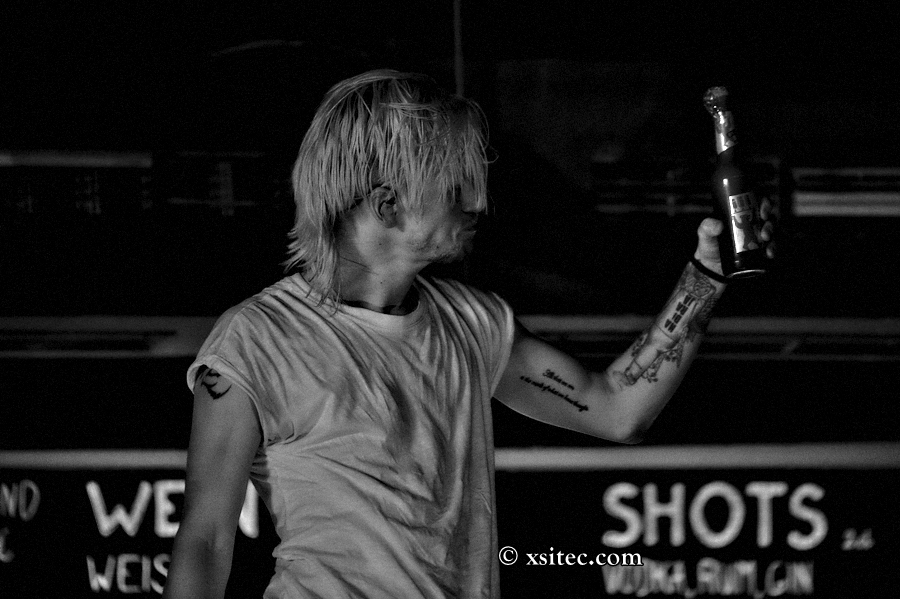 Im Hinterkopf die Sache mit den No-Go-Areas, parke ich den Wagen direkt dort und habe so nur noch etwa 100 Meter bis zum Eingang. Drinnen angekommen treffe ich auf das Hardrock-Klientel Berlins, das es sich nicht hat nehmen lassen, an diesem Abend Erik Grönwall und Band zu begutachten.