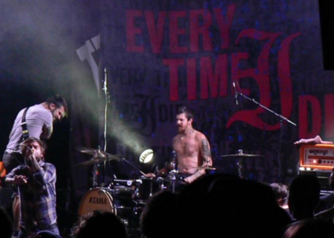 Next Up: ALL SHALL PERISH. Beim Betreten der Bühne macht sich meinerseits Entsetzten breit, Bassist mit Sechssaiter auf Oberbauchhöhe bedeutet gewöhnlich Ungemach durch Gefrickel, Selbstdarstellung und Nerv. Und das pausenlose Fingertapping auf allen Saiteninstrumenten schon im Opener zu einer Mischung aus Growls und Pig-Squeals mag zwar dem einen oder anderen gefallen, gibt meiner Everytime I Die Hell On Earth 2010Vorahnung aber recht und lässt mich nach drei Songs als Nichtraucher lieber im Raucher-Kabinett platz nehmen und eine weitere Einheit Pferdepisse verköstigen. Definitiv nicht mein Fall.