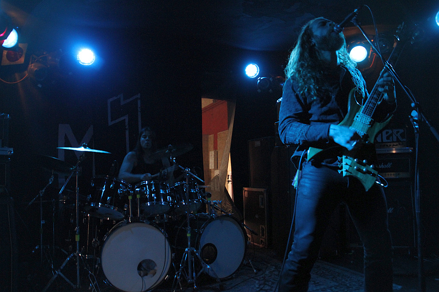 An diesem Samstag findet nicht nur das Hell Over Hammaburg statt, sondern auch eine Kundgebung zur Lampedusa-Problematik. Das sorgt für Staus rund um den Hamburger Hauptbahnhof und eine länger als geplant dauernde Anreise. Um 15.45 Uhr, also eine Viertelstunde vor Programmbeginn, steht man vor der Markthalle, die Abfertigung geht zum Glück zügig, so dass man rechtzeitig in der kleinen Marx steht, um BÖLZER zu sehen. Das Duo aus der Schweiz eröffnet das Spektakel in diesem Jahr und ist selber eine spektakuläre Band. Sänger und Gitarrist KzR ist ein echter Hüne mit dickem Rauschebart, hat das Mikrofon in bester Lemmy-Manier so hoch eingestellt, dass er beim Singen darunter hängt und hämmert mit Drummer HzR einen brutalen Mix aus Sludge und Black Metal in die Menge. Mit ihrer Debüt-EP "Aura" haben sich die Schweizer schnell Kultstatus erspielt und werden recht begeistert aufgenommen. In einfarbiges, dunkel eingestelltes Licht gehüllt, entfacht der rohe, derbe Sound eine eindringliche Wirkung und man fühlt sicht von dem mächtigen Inferno direkt zu Anfang ein bisschen überrollt. Insgesamt sieben Songs werden heruntergeholzt, also die drei vom Demo "Roman Acupuncture", die drei EP-Tracks sowie ein bislang unveröffentlichter. Sollte man mal gesehen haben.