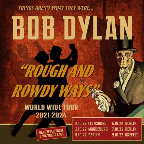 Bei allen BOB DYLAN-Auftritten ist zu beachten, dass es sich um sogenannte „Handyfreie Shows“ handelt, was bedeutet: die Benutzung von Mobiltelefonen ist untersagt. Handys müssen beim Einlass in abschließbare Taschen verstaut werden.
