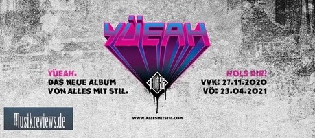 Seit dem 27.11.20 läuft der offizielle Vorverkauf für das neue Album 'Yüeah' von Alles mit Stil. Die 4 Österreicher zaubern mal wieder ein Ass aus dem Ärmel und liefern mit 'Yüeah' ein unfassbar brutales Album. 13 feinste Crossover-Songs gepaart mit ehrlichen Texten sind dabei rausgekommen.